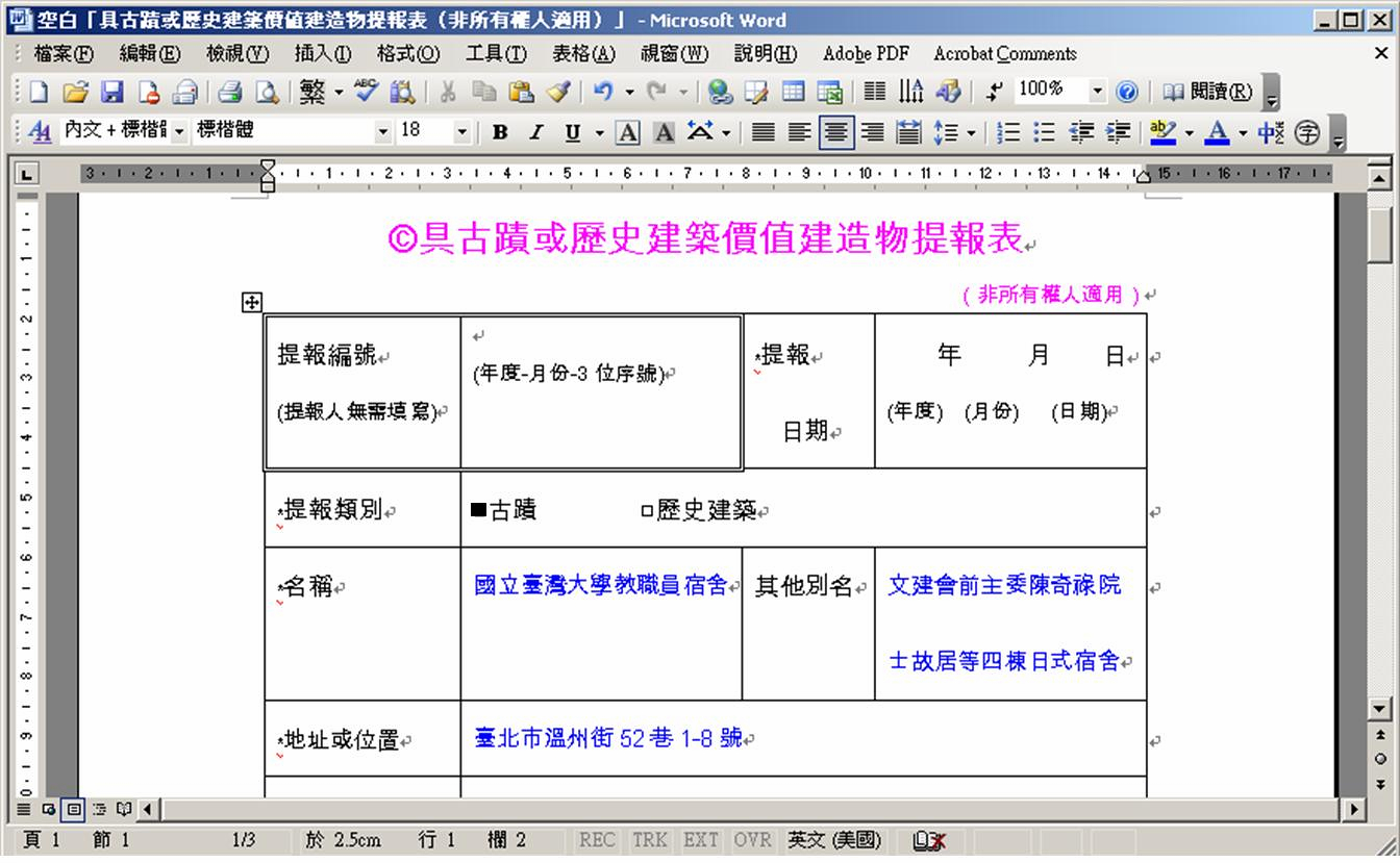 【第一次填「具古蹟或歷史建築價值建造物提報表 」就上手】