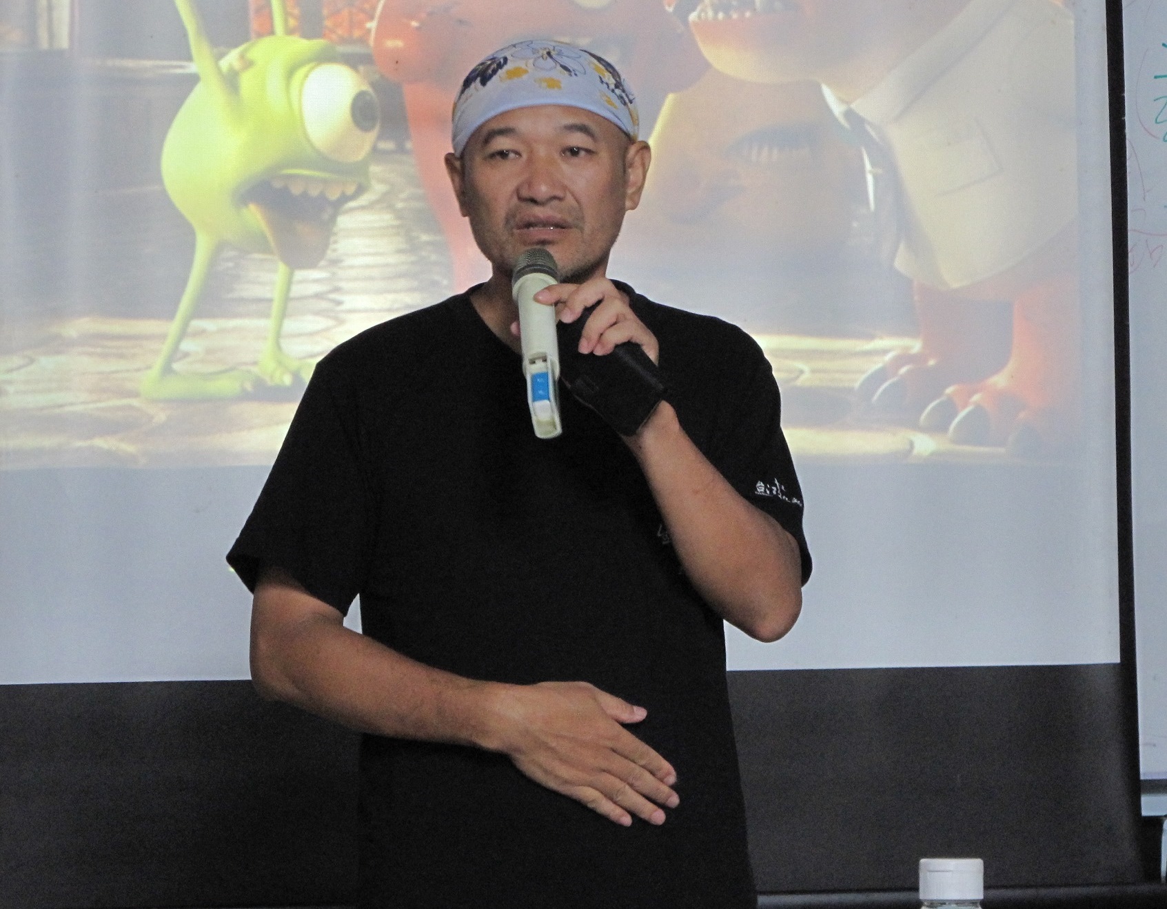 翁育民是在地長安國小的老師,學校師生的參與也是吳茂成規劃流域社群的重要組成部份,工作坊下午由他分享以學校為基地的教案課程設計。翁老師問:在以河流漫布的台江地區,帶學童騎單車走讀社區該教什麼?