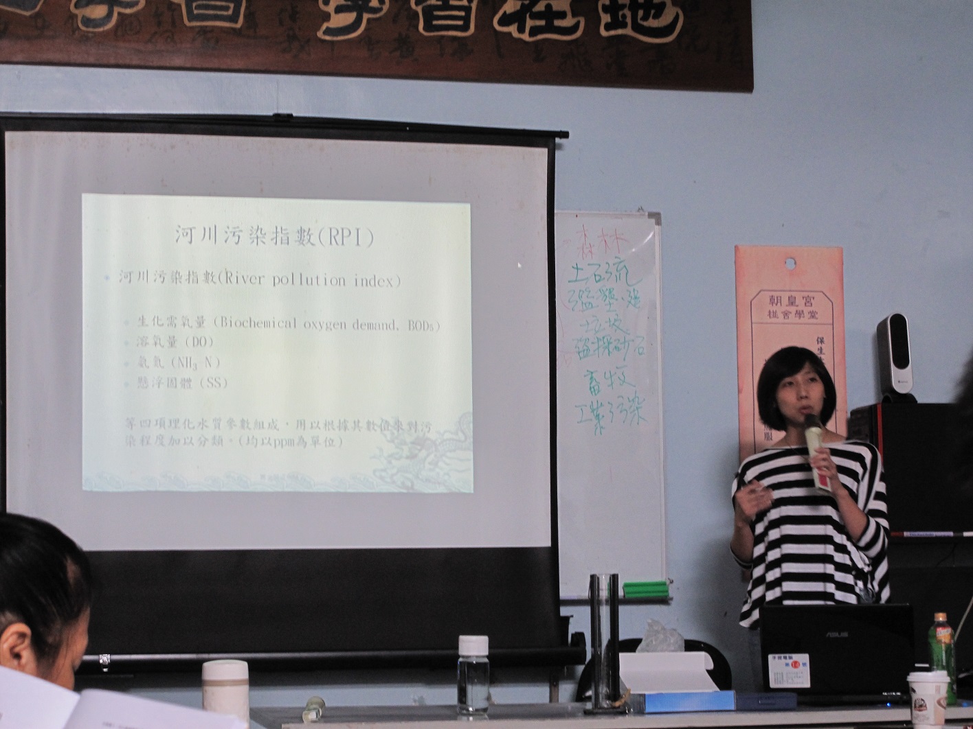 6月8日在海尾朝皇宮的台江分校校本部舉辦一場「培力工作坊」,為台江的教師、社區志工、巡守隊員一同認識河川流域環境問題。高毓瑩老師為在地的教師、家長、社區志工培訓基礎的河川水質檢測能力。中午,高毓瑩與生態達人莊孟憲帶著將近三十位伙伴到鹽水溪的高灘地進行培訓。