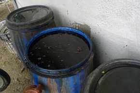 洪國勝住家後院的田地旁,擺著一桶桶用下雜魚、廚餘、米糠自製的堆肥,細小的泡泡不斷湧出,等到發酵完成後,就能再次回歸給土壤當養分。