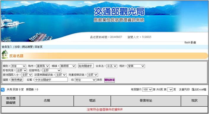 圖片來源:交通部觀光局旅館業及民宿管理系統。截圖/陳芛薇