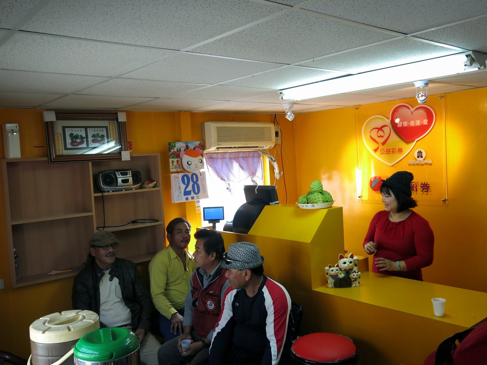 公益彩券在台灣本島風靡多年,隨處可見,而蘭嶼的第一家彩券行則是今年(2014)年初才開幕,作家夏曼.藍波安(左一)、鄉長江多利(左三)、議員夏曼.瑪德能(右二)也出席開幕活動。攝影/何怡君