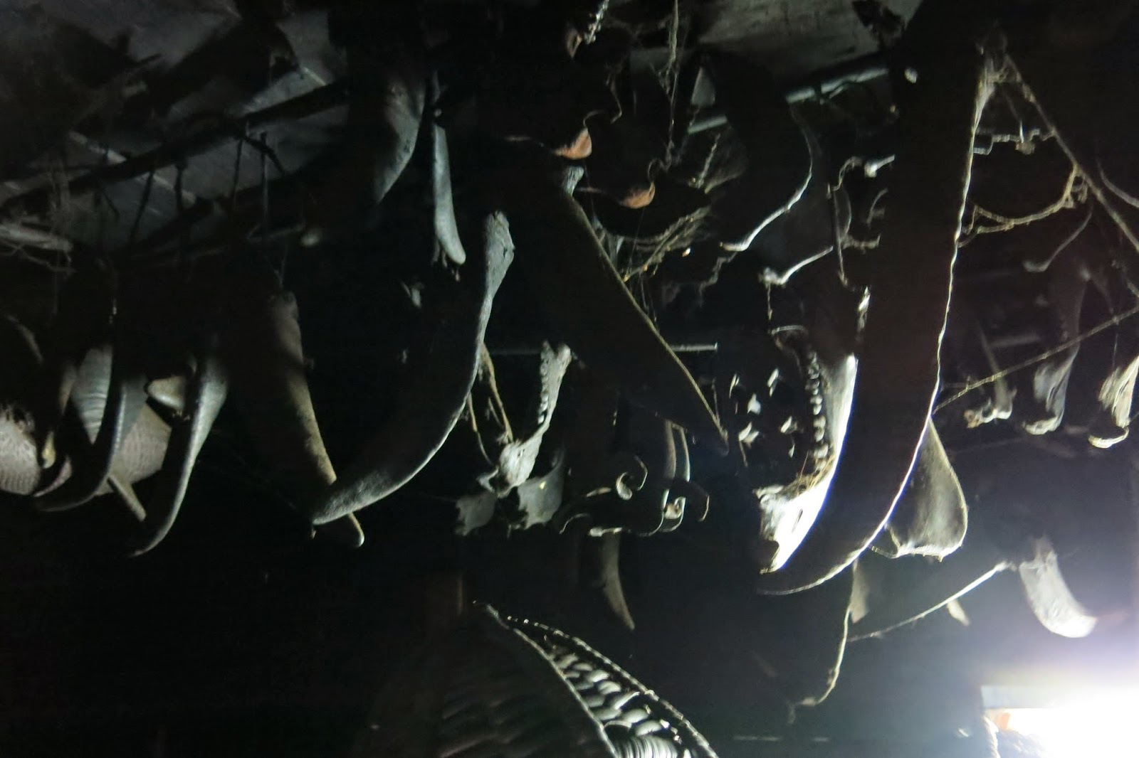 地下屋的主屋中掛滿羊頭骨,屋內狹小空間讓人不能站立,進去時須匍匐前進。攝影/陳品君