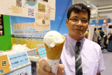 另一個備受矚目的焦點,則是雙葉首度亮相的米冰淇淋。以「阿奇儂」冰品聞名的雙葉食品,和中華穀類食品工業技術研究所合作,用100%台灣米製成米冰淇淋,另外加入來自新屋的桃園三號芋香米。
