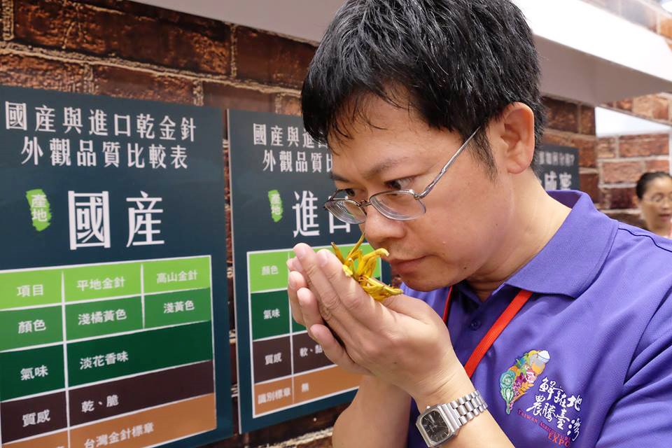 農糧署運銷加工組行銷輔導科技正莊金谷拿起中國金針,邀請民眾試聞,許多人眉頭都皺了起來。他說,中國金針為了保存及增強色澤,多半使用二氧化硫,聞起來刺鼻,本土無硫金針有淡淡花香,顏色淡黃,雖然價錢貴一點,但保證安全健康。