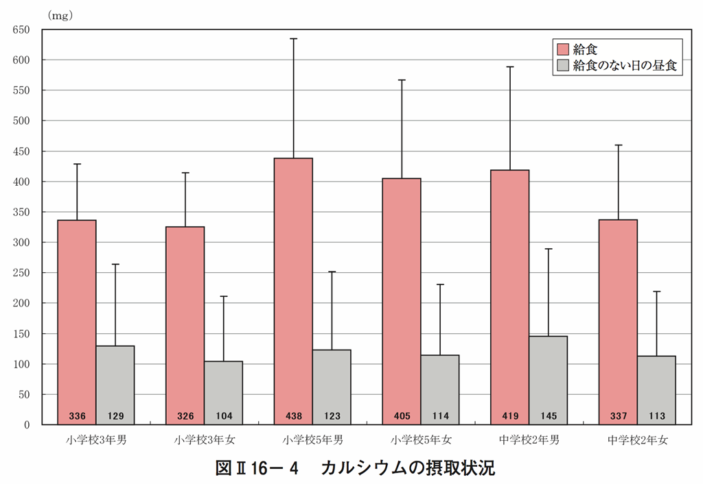 根據文部科學省2010年的學童飲食調查,比較上課日與假日的午餐,發現鈣質、維生素、礦物質等各類營養素假日時明顯不足,其中鈣質更是顯著低下,唯有鹽分攝取量高於上課日。許多家庭六日不開伙,常常到家庭餐廳或速食店解決一餐,原本應該在家庭中養成的正確的飲食習慣,現在反而必須藉由學校的推廣來改善。