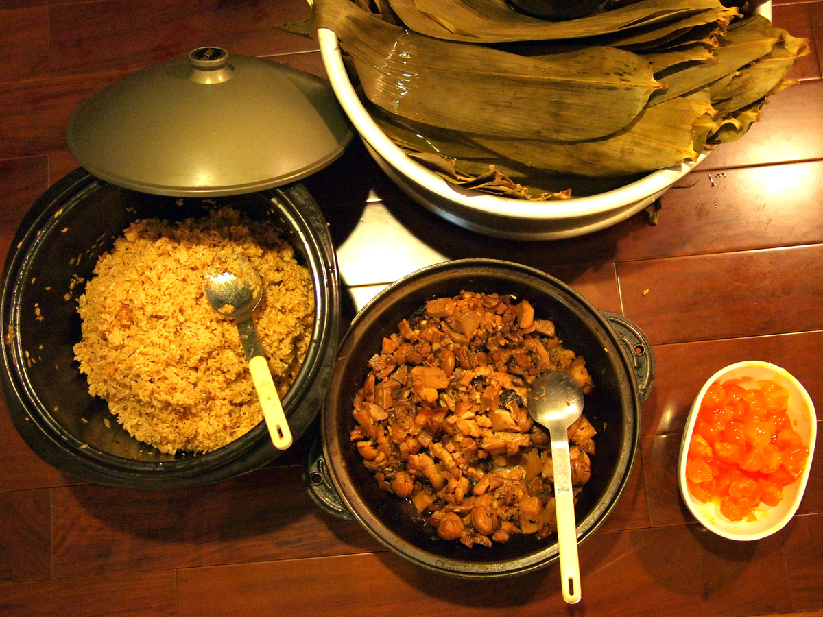 婚前我一度與朋友在外賃屋居住,通常都是我做菜以饗室友;有一年,端午節大家突然想吃粽子,問起廚娘我會不會做?想起幼時看過外婆、母親包過粽子,就憑著腦中印象,不清楚地打電話回家請母親口授秘訣,居然也做成了我的生平第一粽,趁著這端午節將近的時節,把家母的粽子食譜加以整理,而今年我們還是有口福吃到她親手包的粽子,作為已嫁出多年的中年女兒,還有什麼比這更幸福的?而此刻的我正停下半生匆忙的腳步,帶著兒子一起在廚房裡做餅乾、披薩、麵包、甜點、焗烤等,想來還真是福杯滿溢呢。