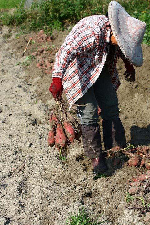 農人介紹:阿嬌姨,絕活:用腳挖蕃薯。