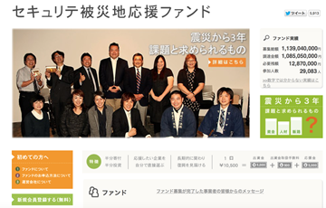 311發生之後,大量捐款湧入東北,music securities也緊急募款想要捐到東北,但後來發現比起捐款,投資反而能建立比較長久的往來,因而推出「一半捐助、一半投資」的震災支援基金,「一口是10,500日元,其中5,000是捐款、5,000是投資、剩下的500則是敝社的手續費。」