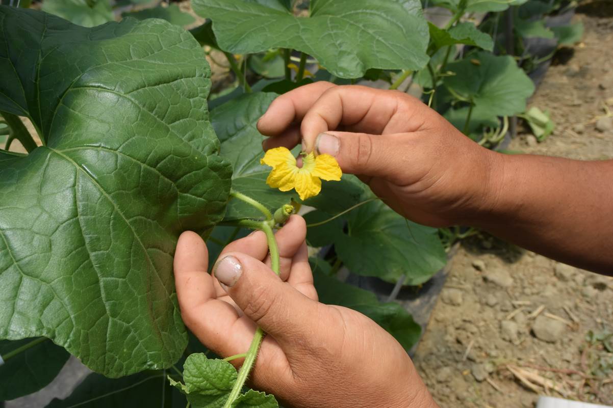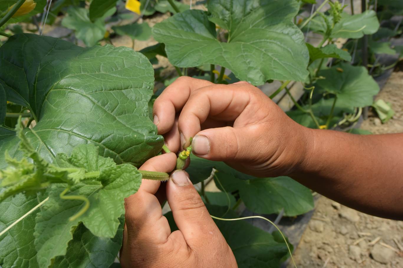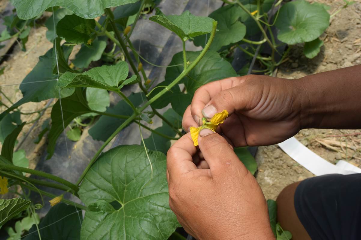 接著謝大哥要開始示範洋香瓜最關鍵的技術-“人工授粉”.