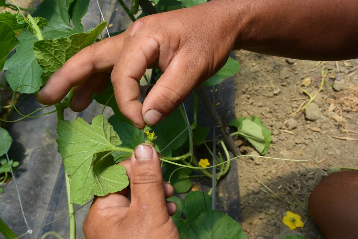 第六步驟:授粉第二天,檢查前一天授粉的母花果實, 若有長大,即是授粉成功.若果實無變化,則要再重複第一到第四的步驟,直到成功為止.