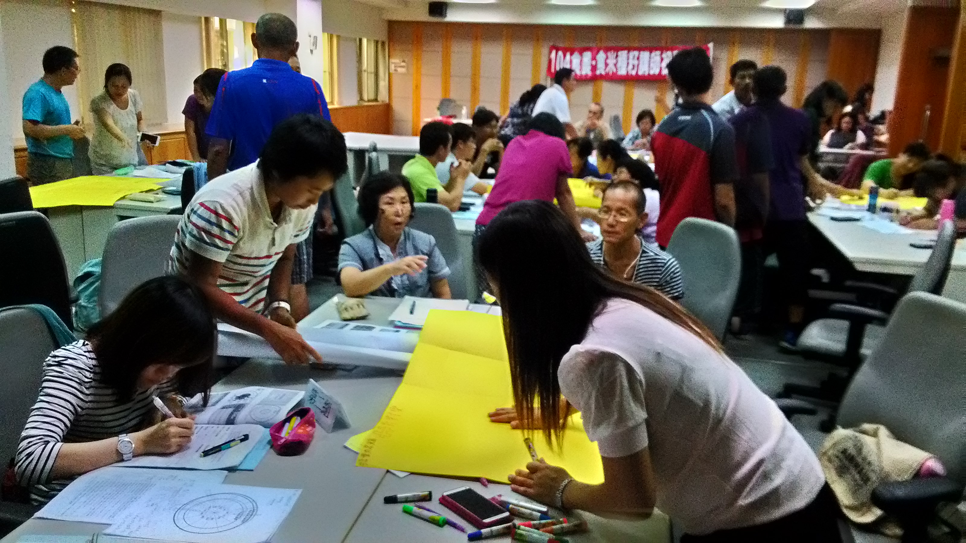 原以為教學活動設計的紙上談兵可以談笑風生,孰料農夫老師與高國中小教師的腦力激盪卻擦出創意火花,直到放學都還欲罷不能。季節性作物以食米、黑豆為主的種植與農產加工,各組在大同間要獨創小異。雖然大家都不藏私地樂於分享食農教育曆與教案、甚至派人四處宣傳慧眼獨具之處,但項莊舞劍、意在專利已註冊請勿侵權。