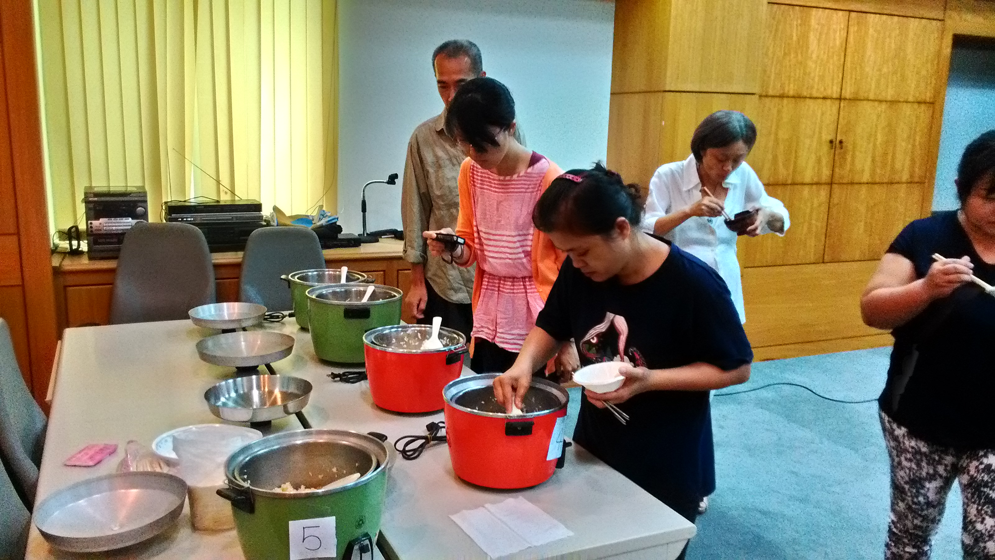 學經歷異常豐富的中興大學張騰維老師的吃米、知米課程,讓一群有機稻農的米食嗅味覺再開發;水稻品種的生長特性、食用口感與加工品的解說,讓一群吃鹽不比吃米少的專家,重新思考自家水田最適合的稻種;米食評比的色澤、香氣、口感、黏唇程度,尤其撼動人心一字排開的五鍋有機米飯真是讓人細細咀嚼、慢慢回味,胃口大開!