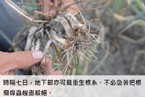 阿洪來電說,好像沒改善,甚至還有一些蔥繼續在黃化與萎凋中。電話另一頭的他急切地問是不是要再追加一些肥與藥。