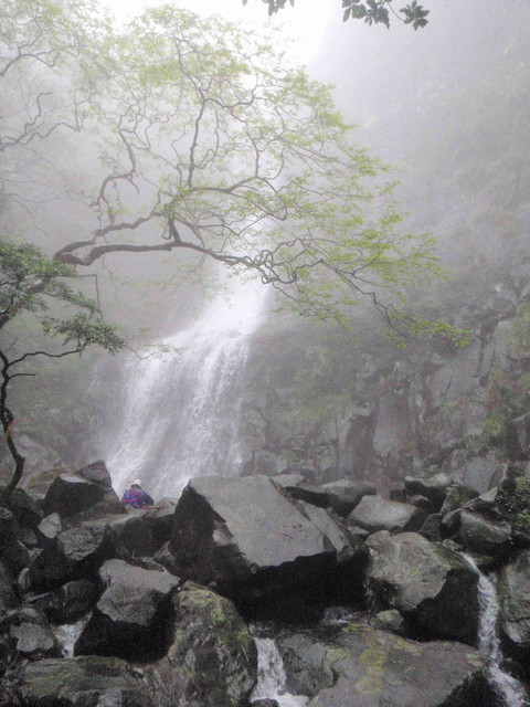 天空烏黯,下起豆大的雨珠,田裡的人茫然地帶著斗笠淋雨看起來是那麼無助,最後只得臨時到處拜託,集結數位村民在雨中脫鞋光腳、手握鐮刀一束一束地靠人力收割。只見稻桿一束一束地倒下就地在田裡漂浮著,雖然我只是一個幫農者,同樣能感受到那份坎坷和滄桑,那種付之一炬,無力回天的惆悵。我的膝蓋幾乎深陷在田裡,拔腿前進濺起泥漿往我身上噴,衣服早就已經變成濕淋淋灰黑色,眼睛被噴得刺痛忍不住眨眼睛,眼睛一閉立即感覺到從斗笠滲進頭裡的雨水混合著汗水自眉心流過鼻梁最後沾在嘴唇上鹹鹹的滋味…