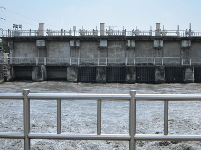 接著,到進水口處,一邊看著那濁水沉積的泥灰滾滾流衝準備入田滋養萬物,一邊聽著陳家彥向我們解釋每個閘門啟閉運轉情形及流道方向,八堡圳流至鹿港、莿仔埤圳流至芳苑、大城。這百年以來的大圳引濁水灌溉出雲林西螺與彰化溪湖居台灣果菜市場批發量中第一與第二的成績,更說明了守護水脈生存的價值。