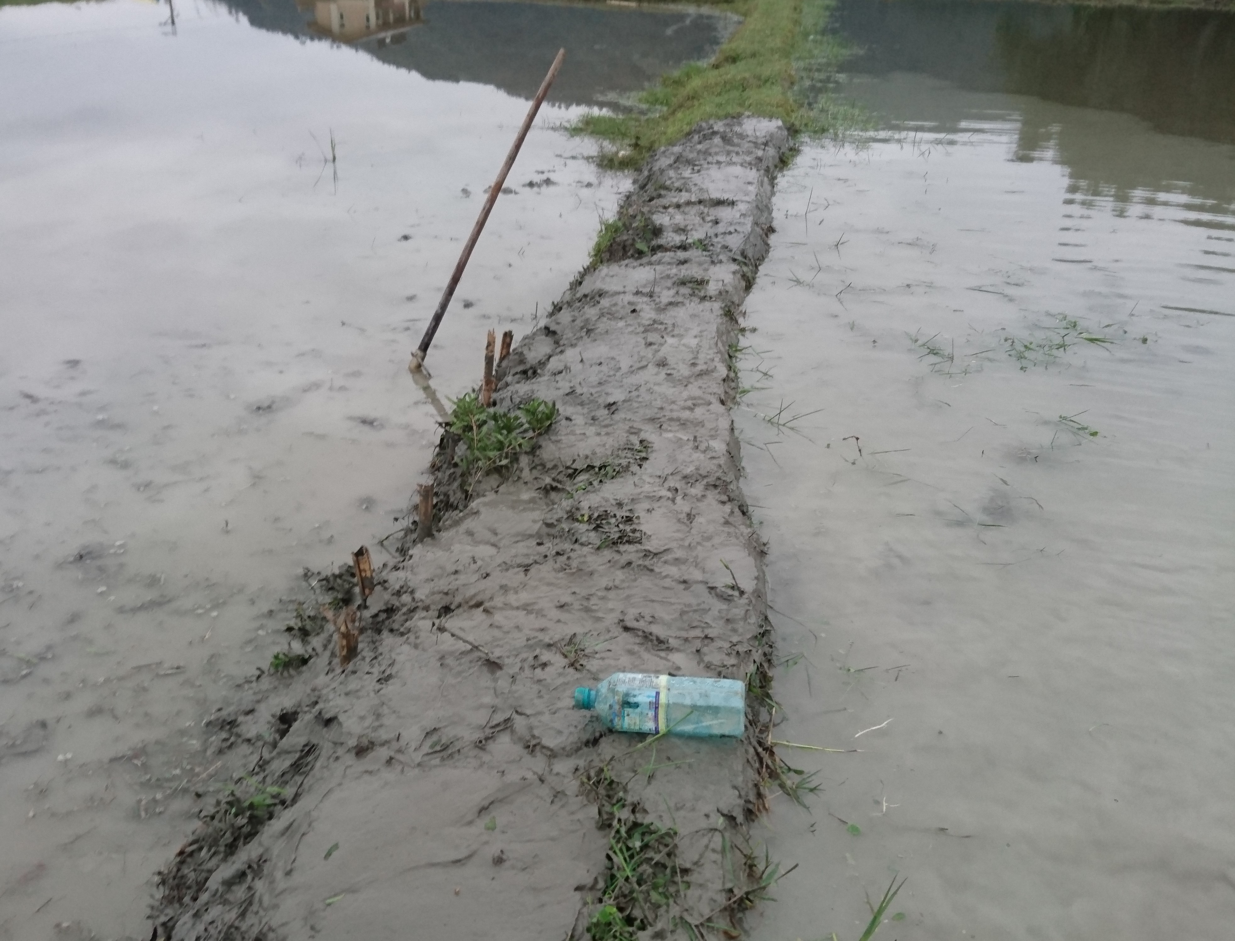 ▲補田梗前。2016年新接的田區,被水沖垮無數次潰堤的田梗。