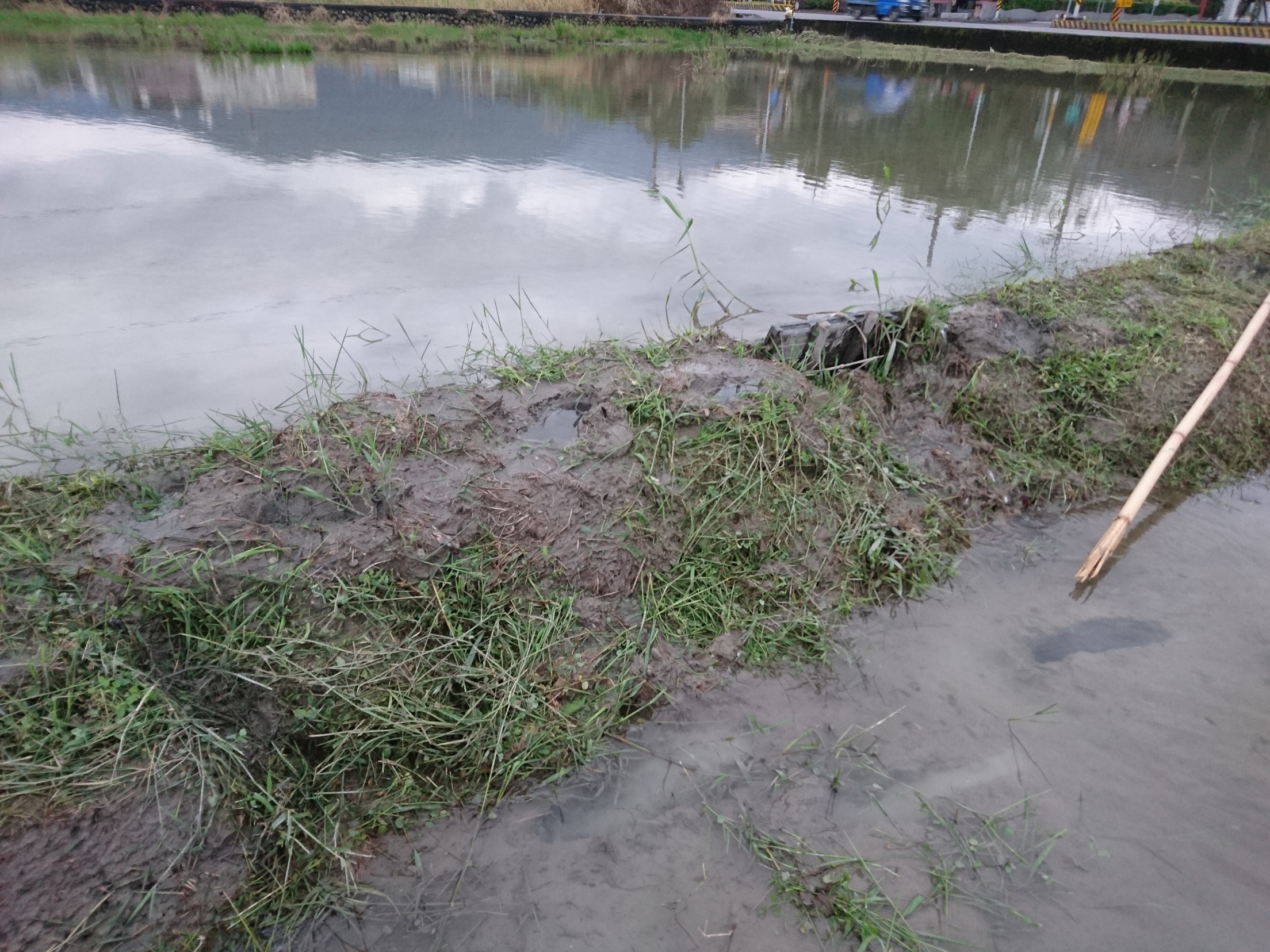 不是每塊田的補田梗工作都如此艱難,也有聽過農友只需用雨鞋踩一踩,田梗就補好了。今年,我新接的「大樹田區」也有著田際3尺落差的現象,且幾處脆弱的區段經雨水、高水位沖刷,坍方了一大半,又是個高難度的田區。有樣學樣,這回的修築工事就由我自個兒進行。雖然一年前只經驗過一次助手的角色,但獨自搬運花了長一點的時間,卻也完工,不再漏水了。老鼠的兒子會打洞,就算沒學過,也是稍加練習就能擁有相同的技藝。