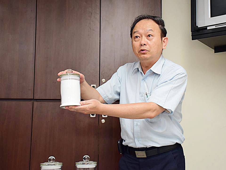 蔡正國解釋,這套技術的產品稱作「奈米孔洞吸附劑」,是將廢棄面板玻璃取出、磨碎、均質、高溫處理,透過顯微鏡觀察,其表面積較處理前增加2800倍;經工研院實驗,其吸附能力是離子交換樹脂的3倍以上。