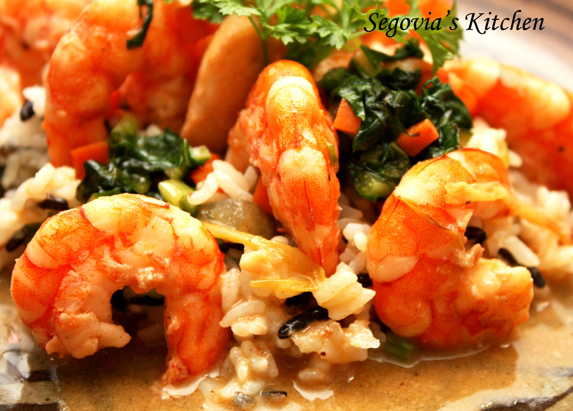 倒入白酒,等白酒煮到收至本來一半的量後,再放入蝦、適量辣醬與鹽巴、黑胡椒調味,起鍋。