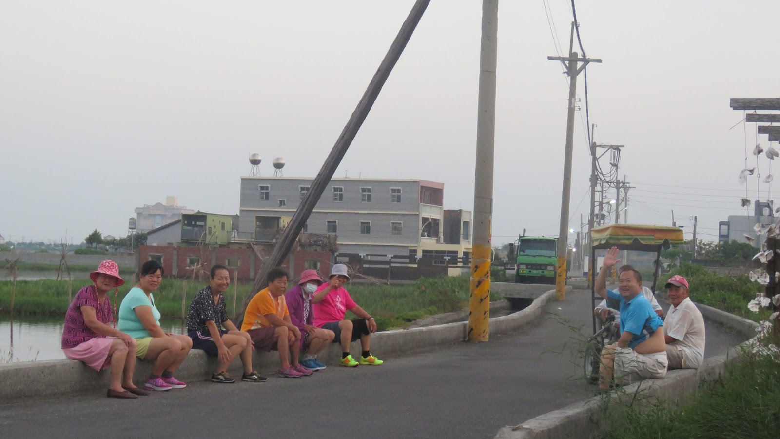 | 清早5:30的成龍村,其實非常熱鬧,阿伯阿姆們的散步大隊 早就繞著村子走了不知幾回,坐在溼地邊休息聊天了 |