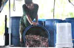 美濃在11月中以後的天氣,大多是陰天有微風,在田裡工作起來非常舒爽,可是林敏棟和邱國文的心情卻很不美麗,因為他們這一季的長豇豆,陸續得到了炭疽病和煤黴病。邱國文回想一開始,其實只是其中一棵長豇豆植株靠近土壤的底部,出現了鏽色的斑狀物,沒想到沒過多久,連葉子都開始出現鏽色斑點或斑塊,而且一棵接著一棵發病,讓他很著急。