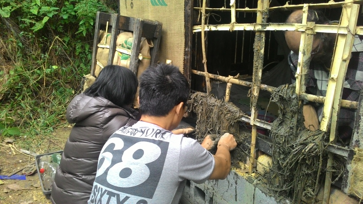 2016年12月初,Geoffroy Godeau踏上台灣這塊土地,台灣樸門永續發展協會邀請來台開設自然建築工作坊,他問台灣人「如果你是一幢建築物,你會是怎樣的房子?」,有的人說是石洞,有的人說是竹子搭建的房子,又有的人說是混和許多素材的房子。而我在還沒來野蔓園當實習生之前是個登山者,在山上僅靠的是一張帆布就度過一晚,所以我一直覺得我並不需要很大的房子,也不需要四周都是密不透風的水泥圍牆,我想我應該是像山上獵人的獵寮,僅有一個屋頂,四周是矮的竹編圍牆,屋頂與圍牆中間是空的,屋子裡還可以生火取暖,就是如此簡單又與自然靠近的房子。其實也就是這樣與自然共處的嚮往,讓我想學習如何建造自然建築。