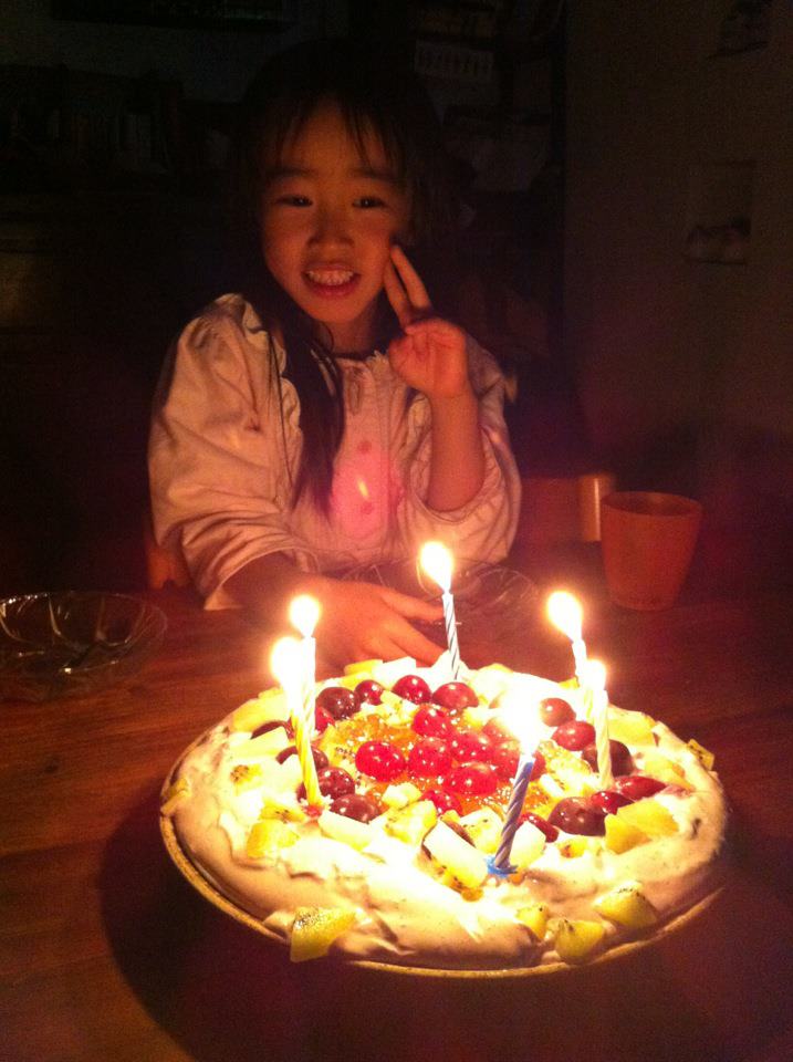 我不知她能不能接受沒有蛋糕的生日派對,凝視著等她的反應。她,邊繼續運轉她的小湯匙,邊想,然後說,『好啊。雖然不知什麼是”水果片冷食”,但,應該是很好吃的東西,是吧?』