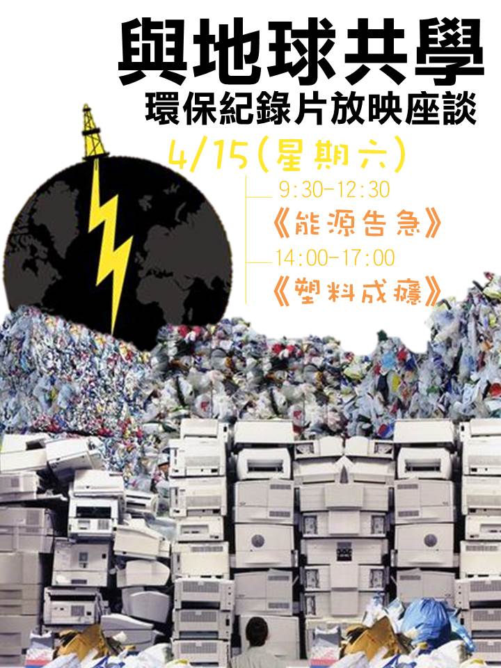 主婦聯盟台中分會將在422地球日的前一周,播映環保紀錄片《能源告急》和《塑料成癮》,針對「能源轉型」和「減塑生活」進行共學,認識台灣能源現況和塑膠危害,唯有瞭解問題才能解決問題,透過座談和討論,形塑出解決環境問題的行動方案,說到做到愛地球!