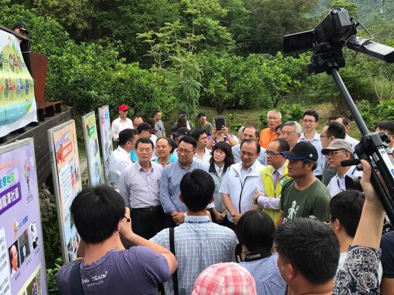 當天還有來自中、南部的農村英雄共襄盛舉,這群英雄不簡單,是農委會水土保持局於全國2千多個社區中選出對地方及農村、農業有貢獻的農村夥伴,其中包括全臺第一個通過農村再生計畫的新竹縣北埔鄉南埔社區的莊明增村長,一提起新竹縣北埔鄉,林主委立即關注現正推動的浪漫臺三線,在莊村長多年經驗分享後,主委期待浪漫臺三線能讓農村再生再加碼。此外,李村長感謝林主委擔認宜蘭縣長時對鯝魚復育的關注與重視,主委更讚揚龍潭社區復育成果,對於李村長十年來的堅持與努力深表認可,認為龍潭社區可做為農村再生的好典範,冀望未來可激發出更多社區參與生態保育計畫,以擴大整體農村社區生態保育成效,達到農村社區環境永續發展之目標。