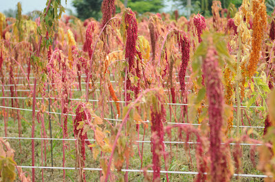 紅藜成熟時因結穗的重量,會如稻穀般低頭彎腰,望眼過去在藍天下的紅藜,互相交織成愛心形狀,像是一整片的愛心花園,或許以後會有個傳說,在底下擁吻的戀人,必定互許終生,永不分”藜”,如果能在這片愛與花綻放的園地裡,舉辦一場特別的婚禮,應該能牽手走向幸福吧!