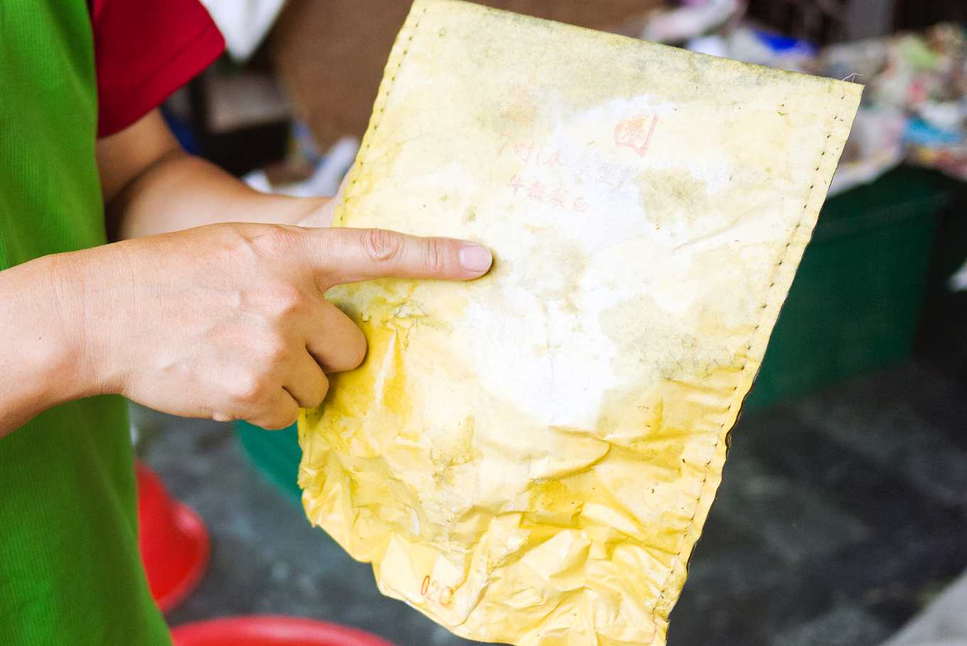 另外,白天的高溫又會把尚未採收的梨子曬壞,產生像是果實過熟的梨蜜症。林君諭順勢拿起用來保護梨子的牛皮套袋說,原本套袋都有一層蠟,但陽光照射的結果使得袋體灰白化,失去保護作用。沒有蠟的套袋還會吸水,讓梨子泡在水裡,枝幹支撐不了重量就會掉下來,「中部的套袋絕對不會像我們這樣。」