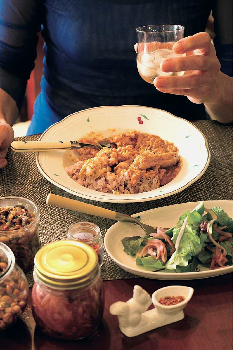 為了煮來毫不費工夫,她還常備各種「湯底」。「我會想冰箱裡既然有湯底的話,那就做吧,而且,只要少少的量就能使食物變得更美味。像今天的咖哩,雖然是用小鍋子煮一人份而已,可是味道絕對正宗、道地。」