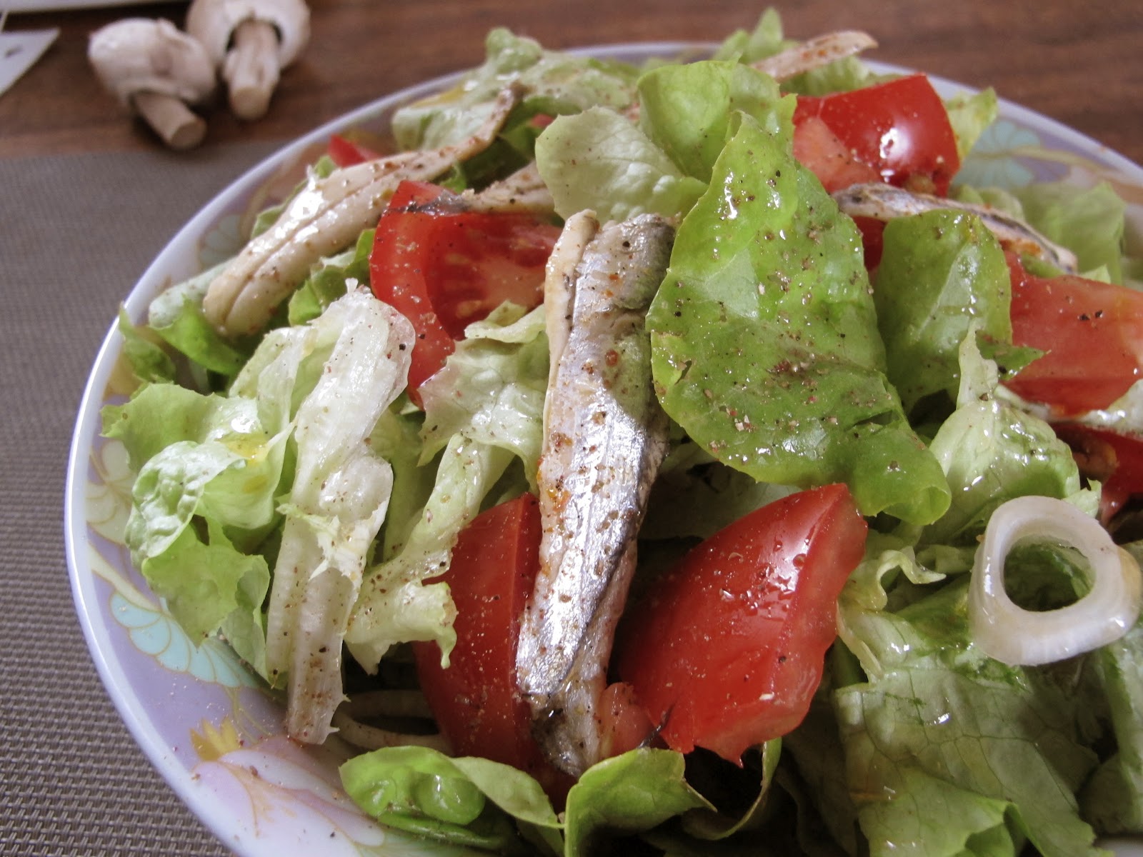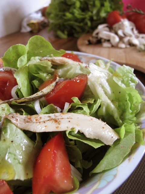 撒上海鹽,研磨胡椒,橄欖油 & 白酒醋.