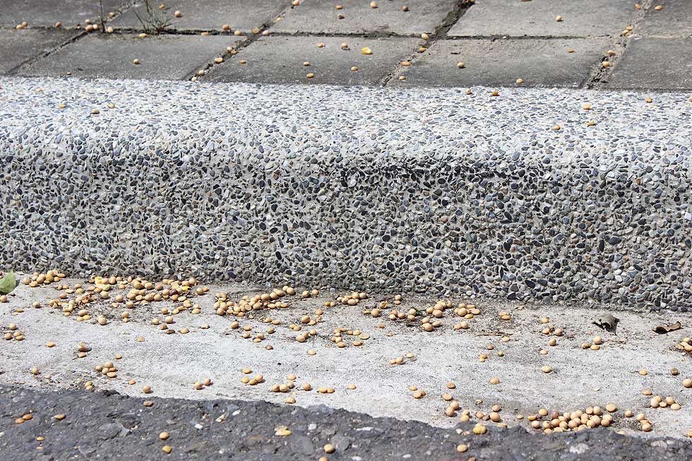 實地來到現場,便會發覺這樣品一點也不難找。日本人八田純人來台不過短短數日,便發現榨油廠附近道路遍布基改黃豆種子和植株。上下游記者也僅用一天時間,就在官田工業區和永安工業區拾獲為數眾多的基改黃豆和玉米種子, 二次造訪時發現的數量更達數百顆。