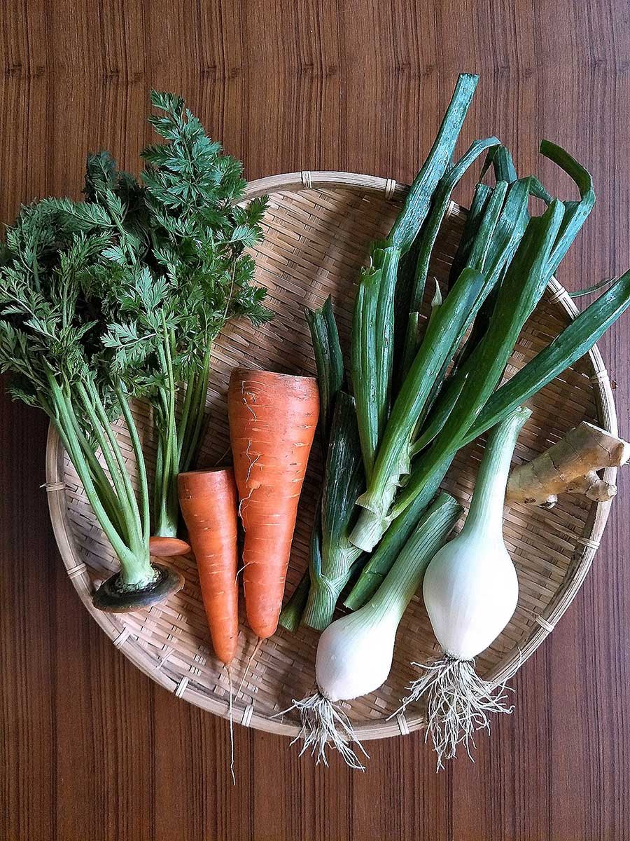 初春時日友人分贈郭大哥農場的帶葉洋蔥胡蘿蔔,葉比根莖長,整株快二尺!不在產地,一般市場很難看到這般蔬果全貌。既來之則醃之,才不枉費農人辛勞,橫心就把它們斷頭!切下胡蘿蔔幼綠長穗的葉,它的氣味我一時沒有把握,就來改味製成雪裏紅,灑鹽輕揉菜葉封裝冷藏兩天,只要有雪菜,肉絲麵就會是接下來的方便菜。洋蔥葉長得跟大蔥有八分神似,切下連薑絞碎加鹽調味,再淋上燒熱的苦茶油即可封存裝罐。這味茶油蔥醬百搭海陸燒烤,保證一罐挺您橫行江湖。