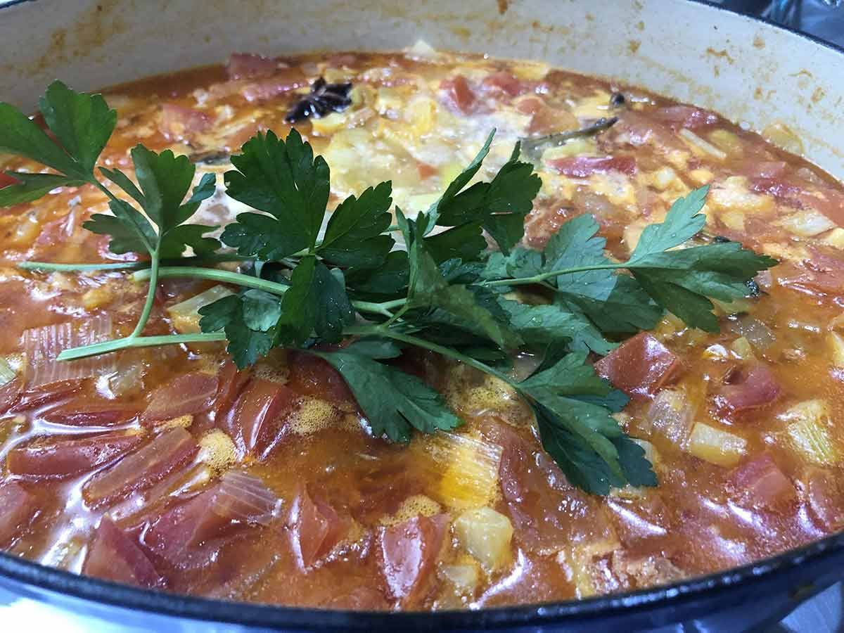 而我煮過最繁複的魚料理當屬馬賽魚湯(bouillabaisse),這道名菜來自法國地中海地區,號稱是普羅旺斯美食的光榮。平常看到的馬賽魚湯都有蝦子,但某次上網看到道地的馬賽魚湯是沒有蝦蟹的,當下決定用這道菜來隆重地慶祝西洋情人節,展現我對老婆的愛。
