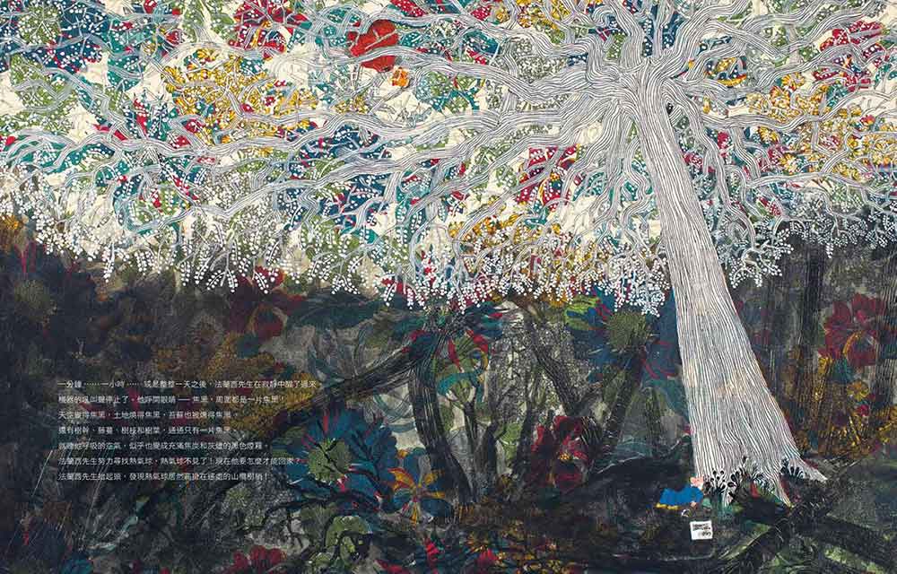 繪本作者斐德利克.芒索(Frédérick Mansot)接受導演呂克的邀請,於《Il était une Forêt》拍攝期間,貼身跟隨著植物學家法蘭西斯,深蹈一座原始森林祕境探索。斐德利克以既素雅用色又鮮麗且帶點魔幻色彩的繪畫筆觸,繪出如夢似幻的故事,允為一本文字極富寓意、畫作萬分動人的純淨治癒繪本。