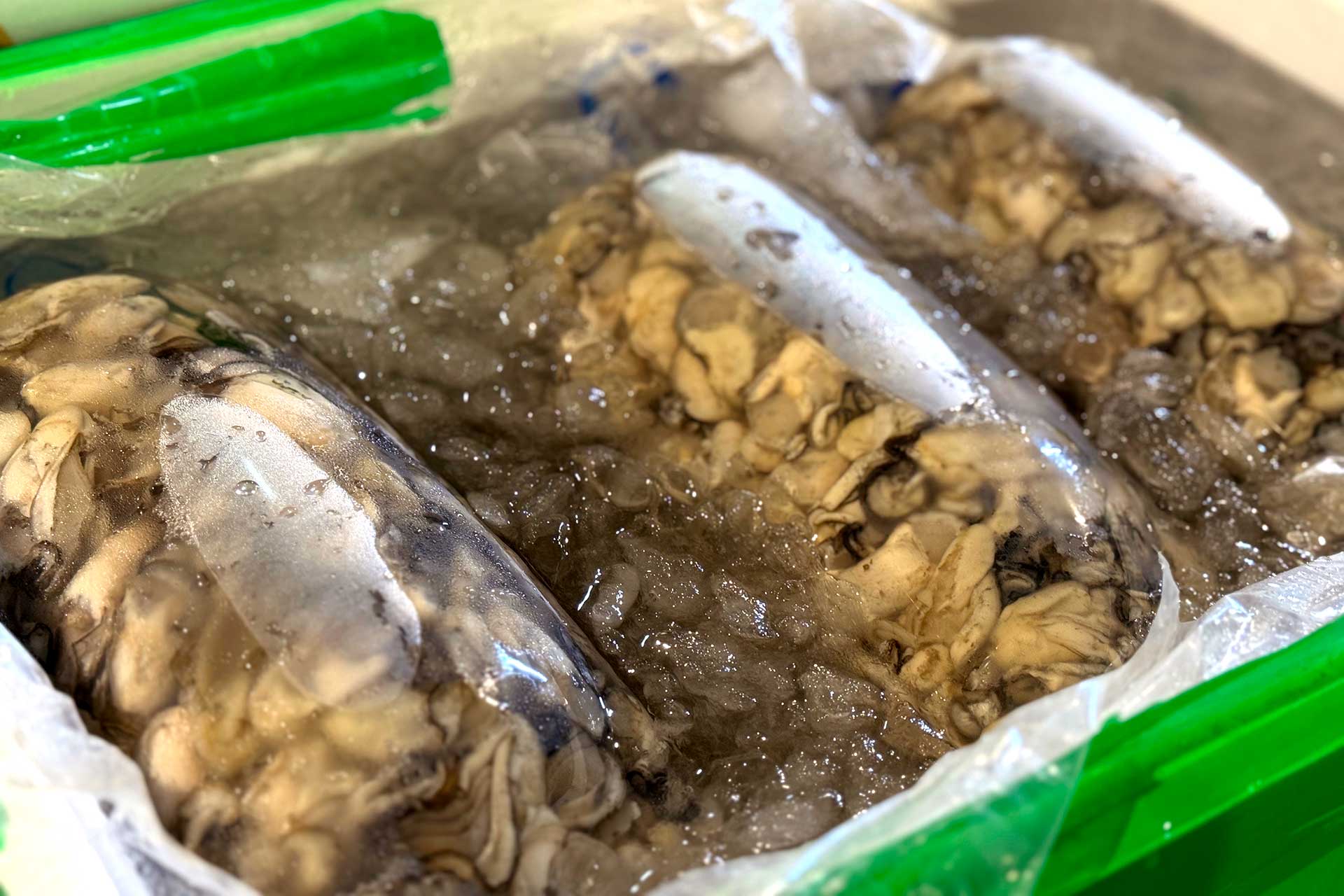 蚵肉清洗後,便依客戶需求包裝。一袋袋牡蠣放在保麗龍箱中,由卡車運送至全國的批發市場或餐廳,完成牡蠣到餐桌的最後一哩路。