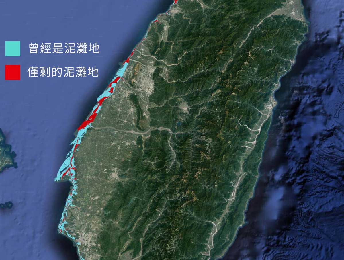 1970 年代進行大量的填海造陸,沿海泥灘地被劃為養殖漁業專區或農地;再加上 1980 年以後,台中港、彰濱工業區、六輕工業區等建設,更進一步侵蝕了沿海泥灘地。這些開發行為直接導致泥灘地的面積迅速減少,至今已有約六成的泥灘地不復存在。